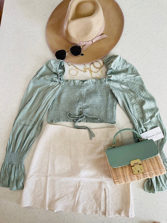 A Little Flirty Sage Ribbed Long Sleeve Crop top