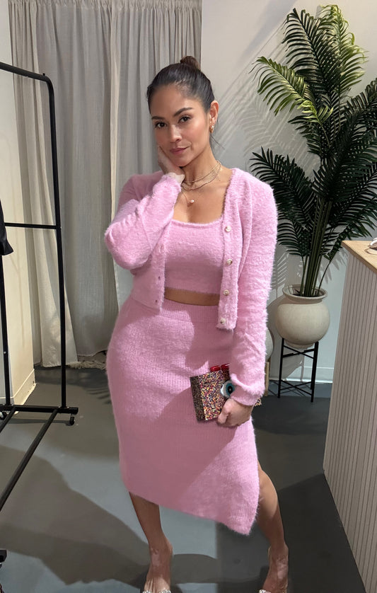 Rose Luxe Fuzzy Cardigan Set