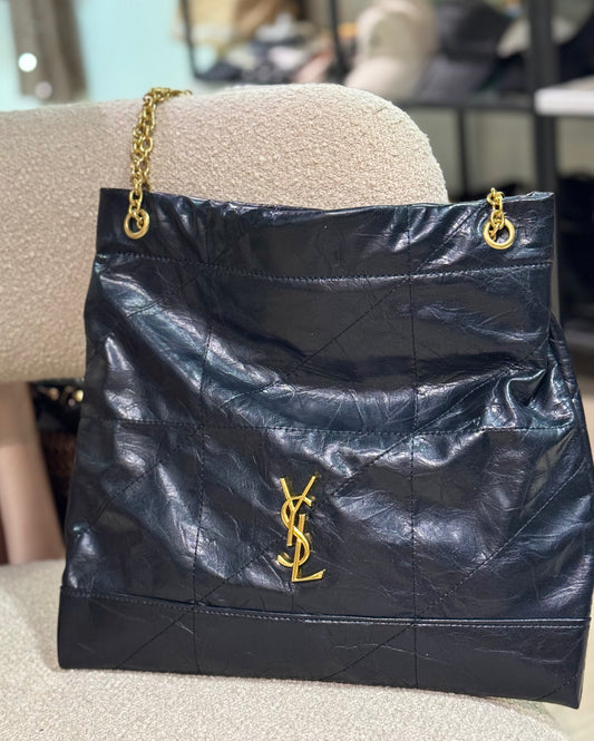 Metal Letter Engraved Leather Shoulder Bag