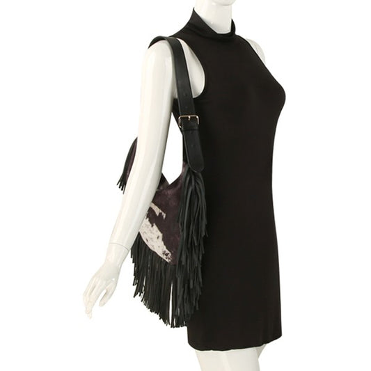 Cowprint Fringe Shoulder Bag