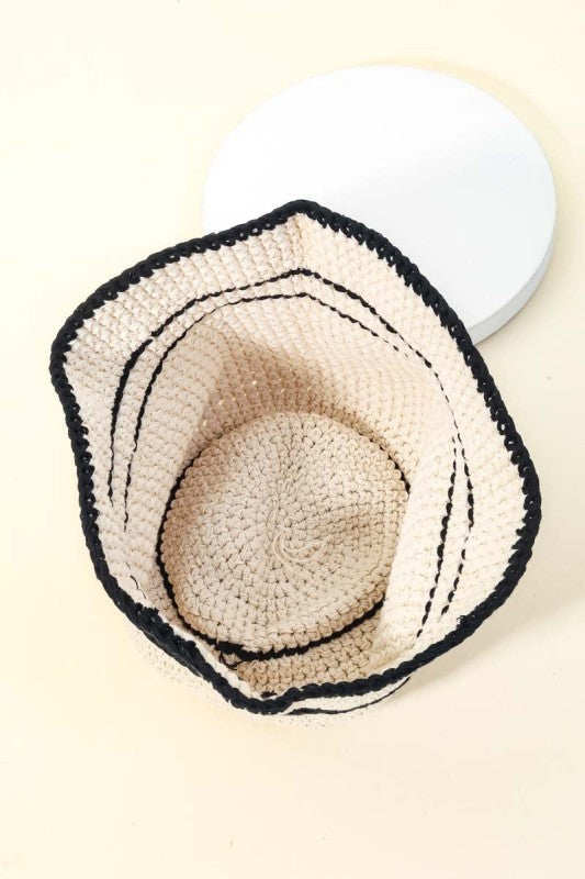 Checkered Straw Weave Sun Hat