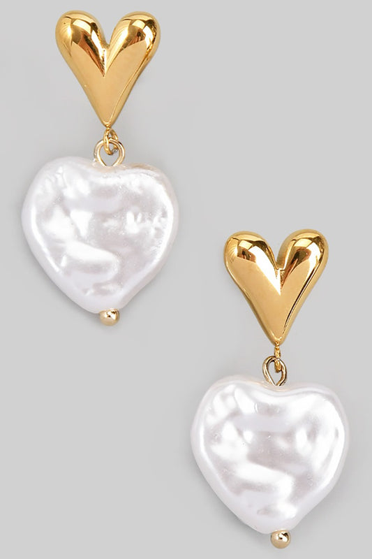 Organic Pearl Heart Drop Earrings