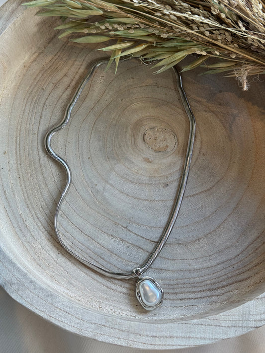 Snake Chain Necklace Baroque Pearl-Style Pendant