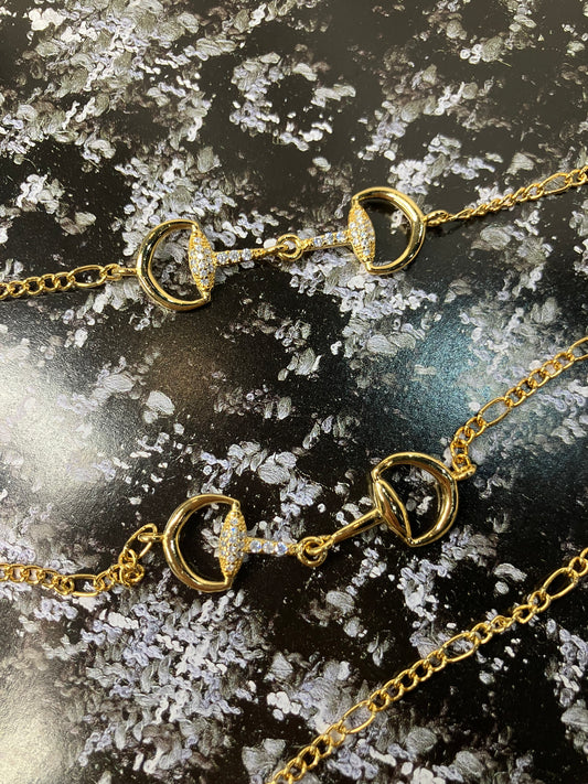 Gold Dipped Cz Pave Oval Link Pendant Necklace