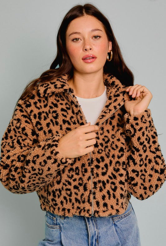 Bold And Beautiful Leopard Print Sherpa Jacket
