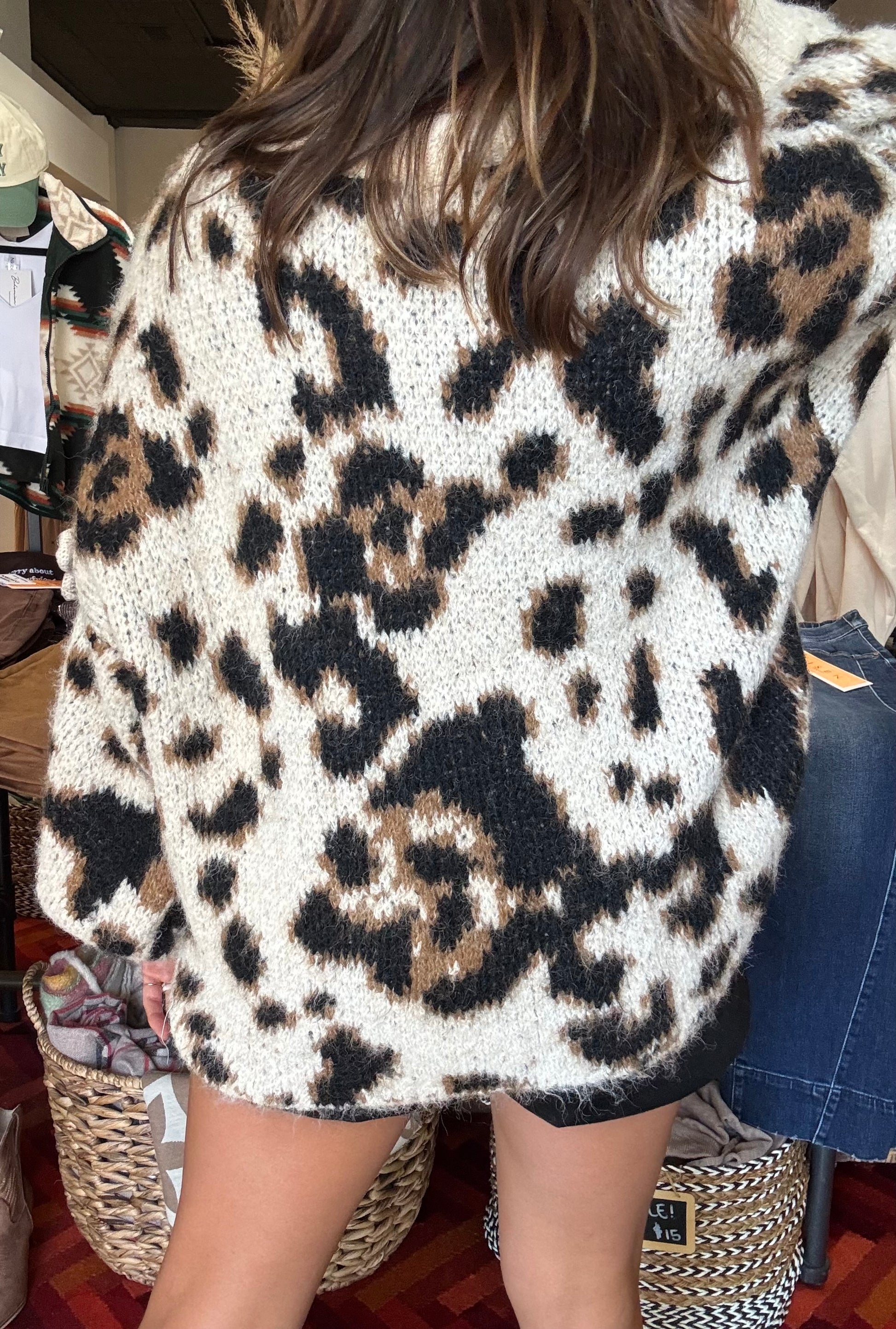 Unleash your wild side with this oversized fuzzy sweater featuring a bold animal print that demands attention. Crafted from plush, touchable fabric, it's the perfect statement piece for those who refuse to blend in. Layer it over anything and instantly elevate your look with untamed style and cozy comfort. Perfect for making a fearless fashion statement.