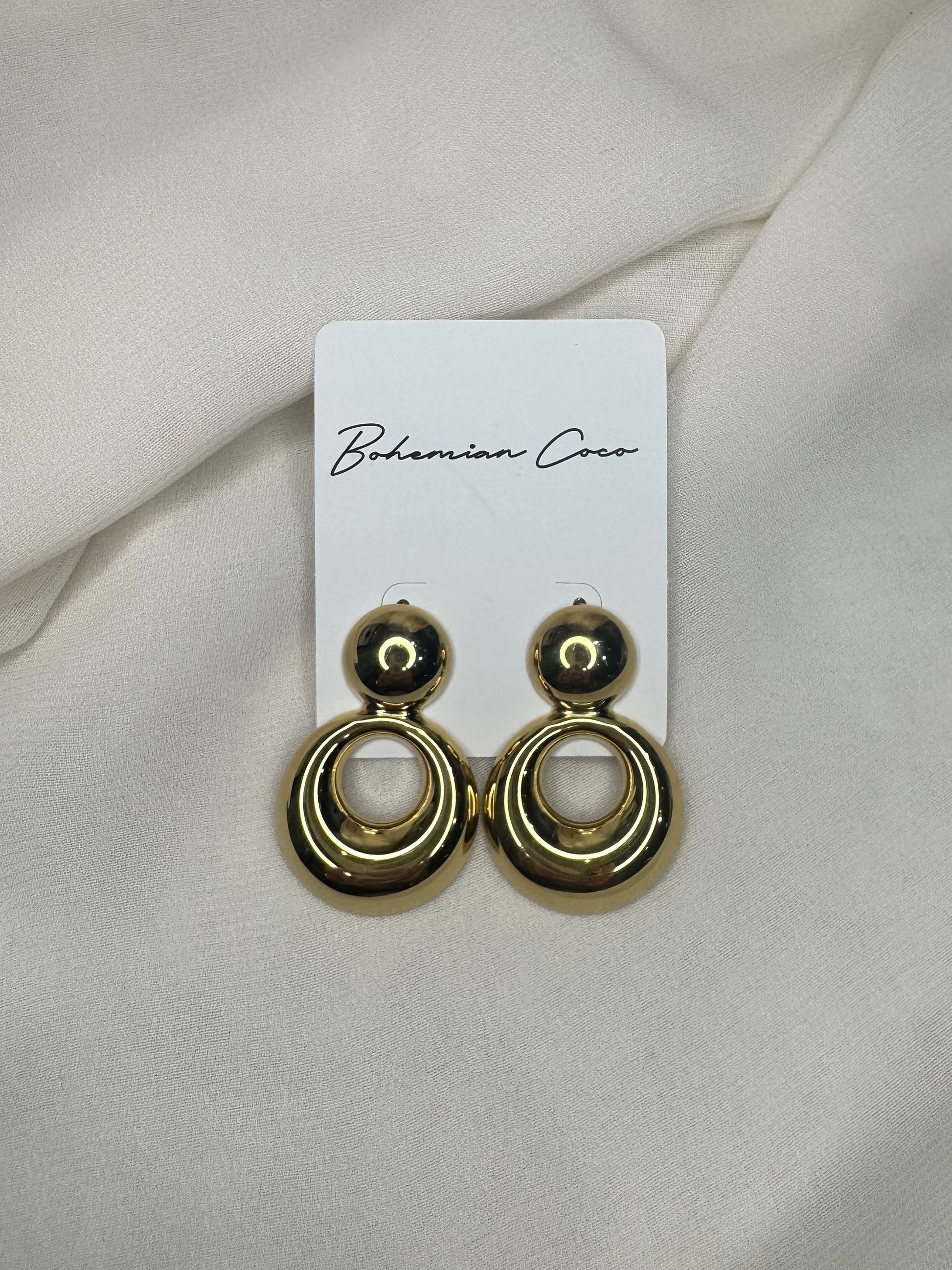 Elevate your jewelry collection with these exquisite gold medallion drop earrings, crafted with 14K gold plating for a luxurious finish that won't fade. The timeless medallion design exudes refined elegance, making them an ideal choice for both special occasions and refined everyday wear. Suspended gracefully from delicate hooks, these earrings offer a perfect balance of statement-making presence and understated sophistication that complements any wardrobe.