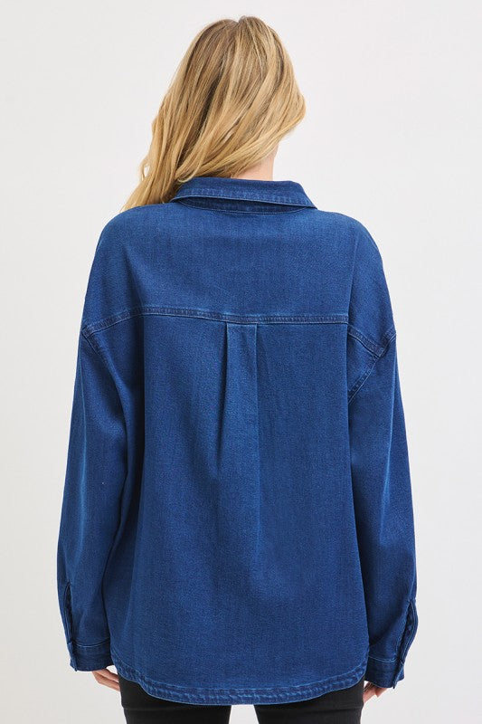 Effortlessly elevate your everyday wardrobe with this oversized denim shirt, a timeless staple that bridges casual and refined style. Crafted from durable denim, it features a relaxed silhouette that drapes beautifully while maintaining structure. The generous fit allows for comfortable layering and versatile styling—wear it open over a dress, tied at the waist, or buttoned for a polished look. Perfect for those who appreciate understated elegance and quality basics that transcend seasonal trends.