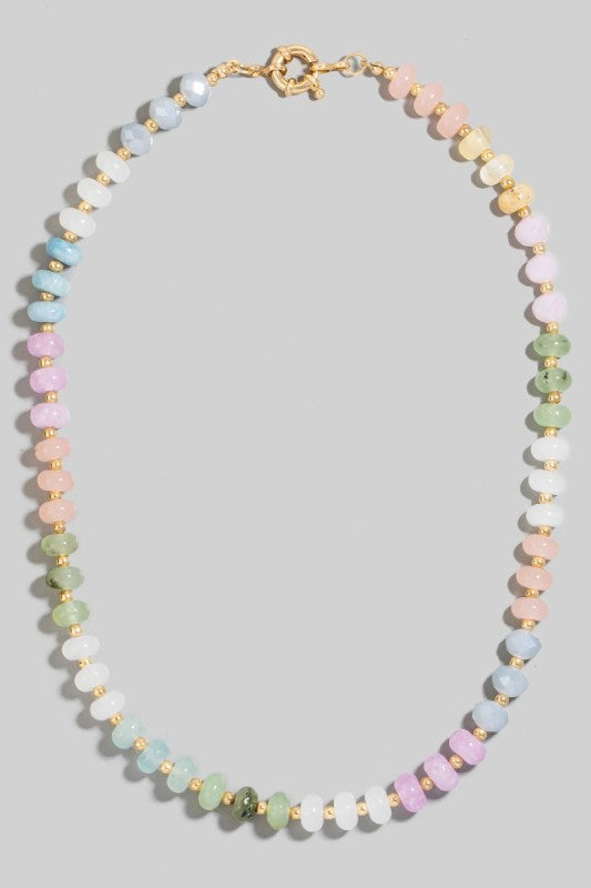 Add a pop of color and charm to any outfit with this Round Stone Beaded Necklace. Its smooth, rounded stones bring playful texture and natural beauty, making it perfect for brightening your day or gifting a smile. Lightweight and easy to wear, it’s the perfect accessory for those who love a fun, effortless look