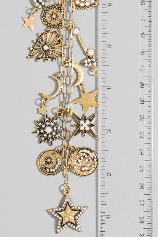Studded Heart Moon Star And Coin Charms Statement Necklace