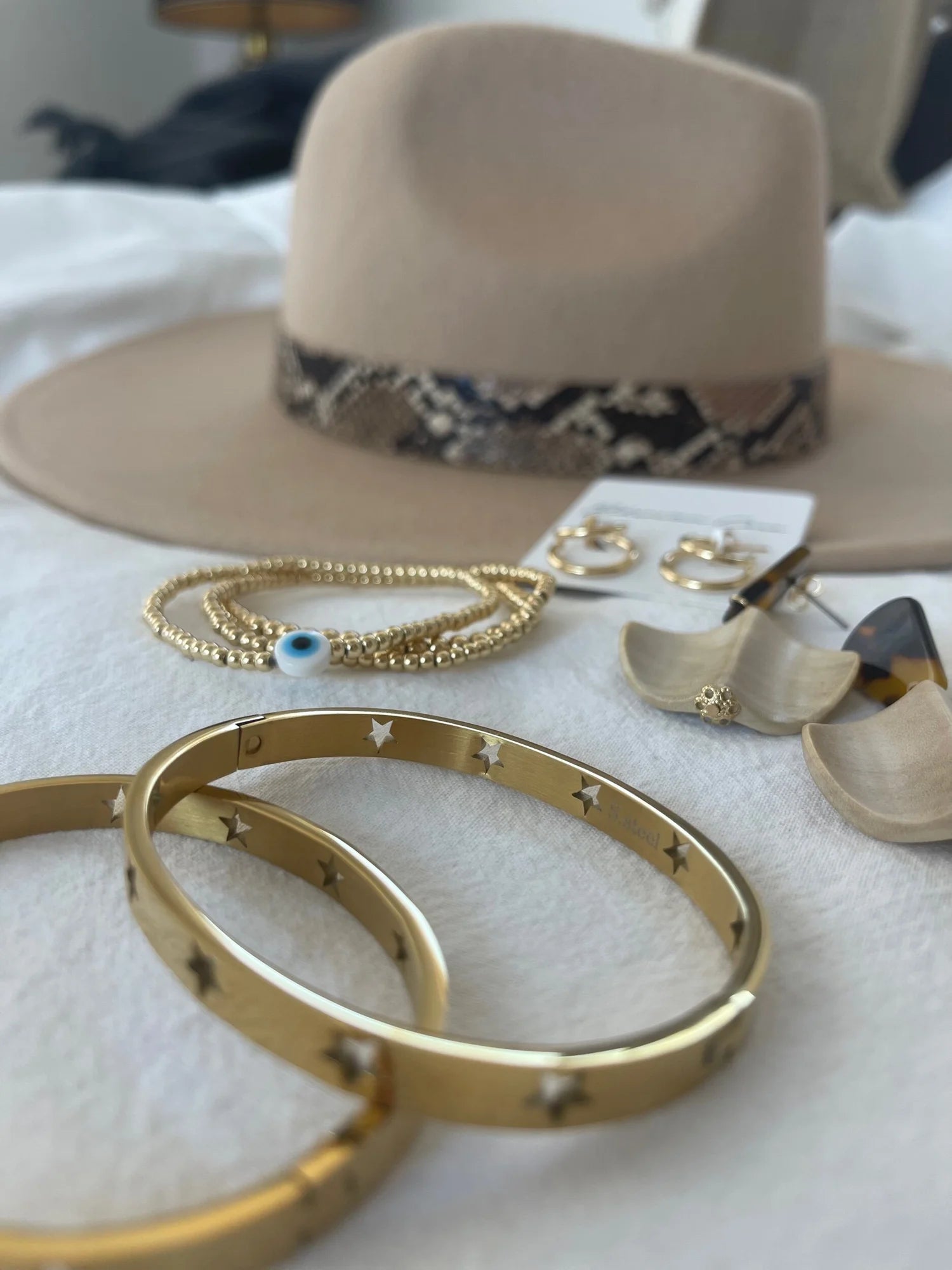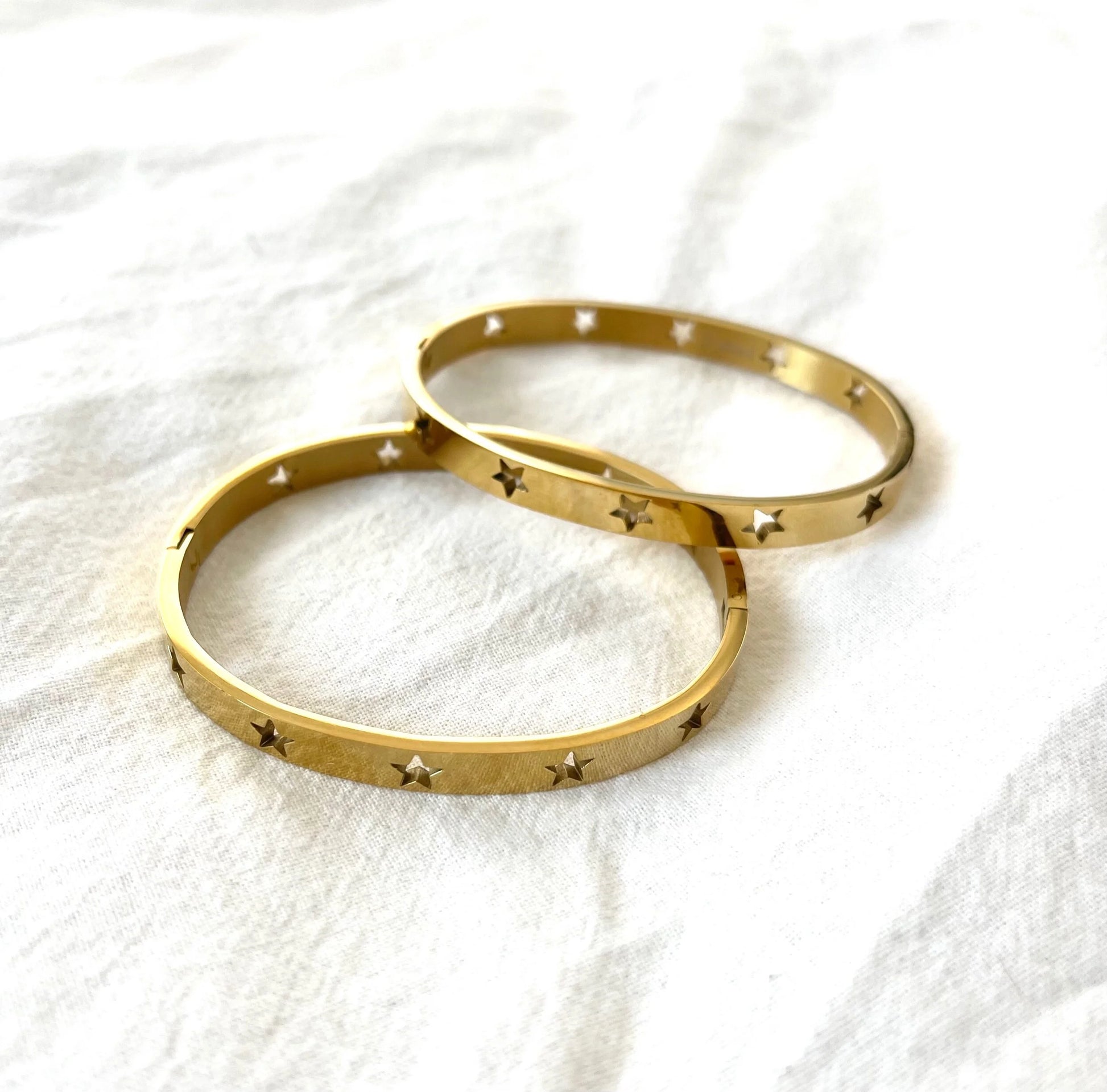 Reach for celestial vibes with this stunning stainless steel bangle adorned with perforated stars that catch the light beautifully. The sleek, polished design pairs effortlessly with any outfit, while the star cutouts add a whimsical touch that's totally Instagram-worthy. Durable, tarnish-resistant, and endlessly versatile—this bracelet is your new go-to accessory for everyday sparkle and cosmic charm.