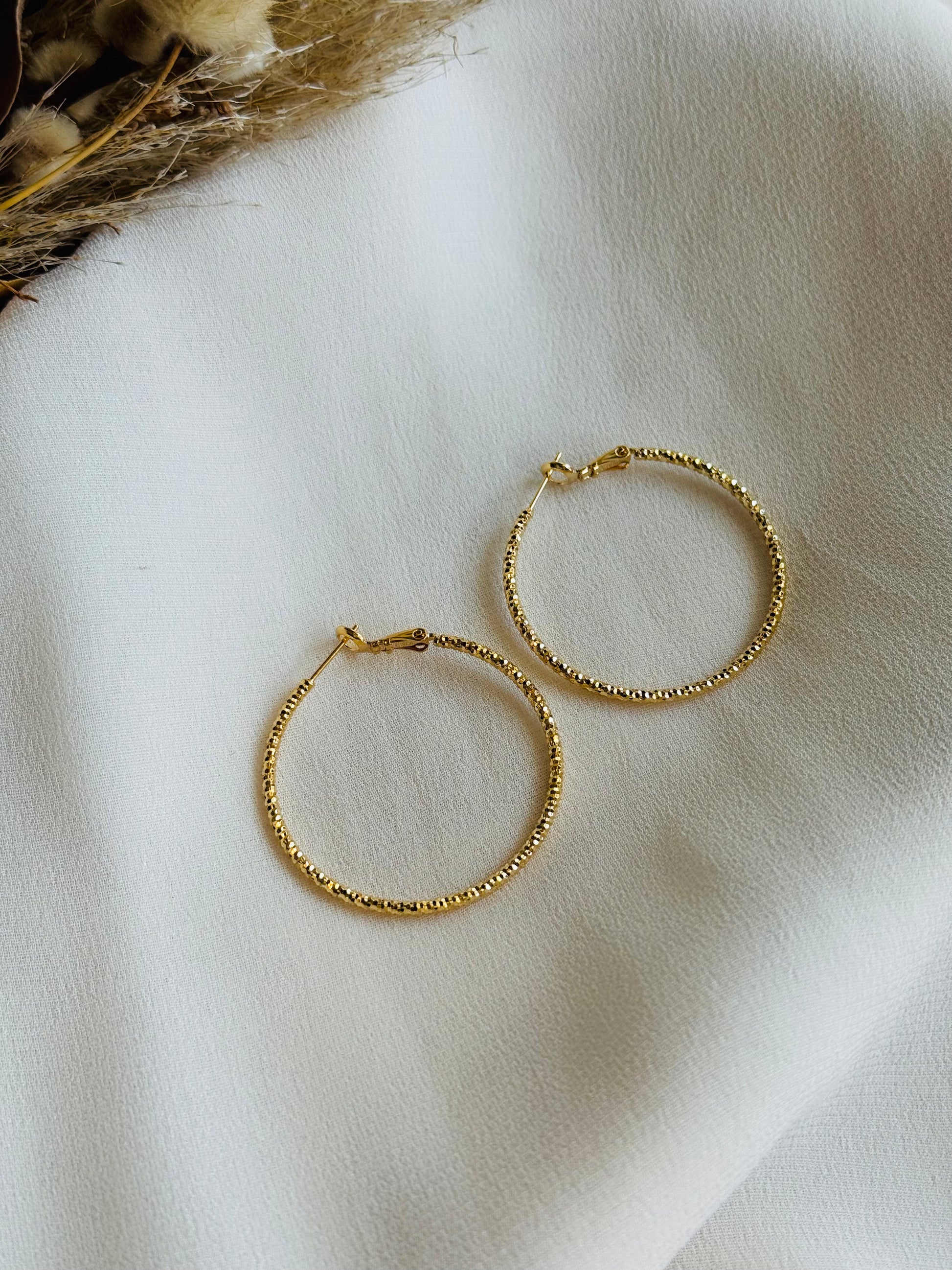 Elevate your ear game with these bold Textured Shine 14k Gold Dipped Hoops—where understated elegance meets fearless style. The intricate textured surface catches light with every turn, creating a mesmerizing shimmer that demands attention. Crafted with a luxurious 14k gold dip, these hoops deliver premium appeal without the premium price tag. Perfect for those who refuse to play it safe, they're versatile enough for everyday wear yet striking enough to steal the spotlight. Make a statement that's unmistakably you.
